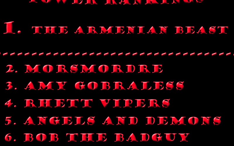 - Angels and Demons – Lily got the W against Serah Feena and Billsta keeps coming up just short. He could have had the Rising Star Championship match in the bag, but luck just isn’t on his side. He gets another shot one on one with Amy on the first show of the new tour. Let’s see how that plays out.